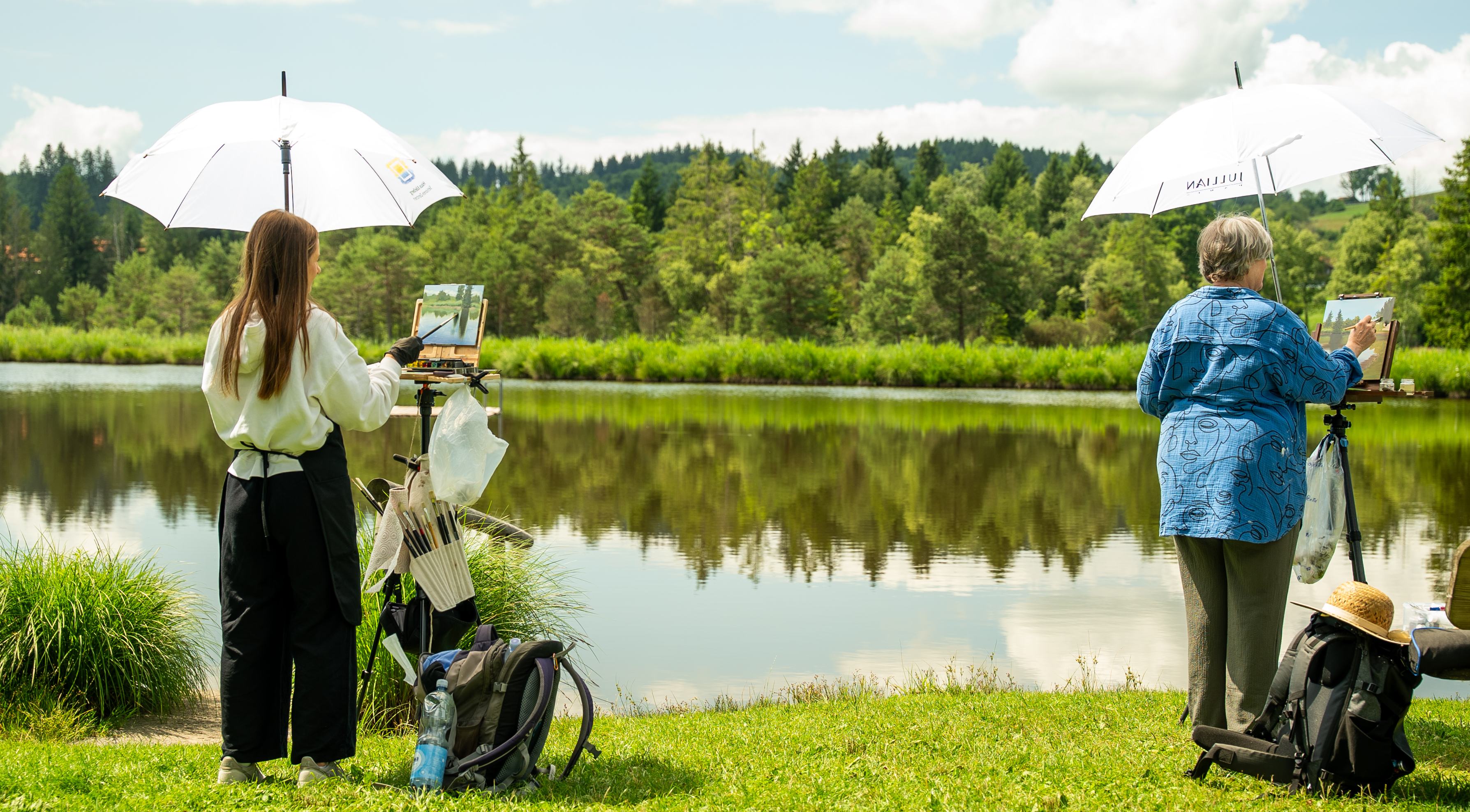 „En plein air" ist französisch und bedeutet „im Freien". Und genau dort befindet sich das größte und schönste Atelier der Welt! Sieben Teilnehmerinnen haben im Kurs von Dozentin Yo Rühmer die Kunst der Pleinairmalerei kennengelernt. Das Thema: Landschaftsmalerei in Öl!