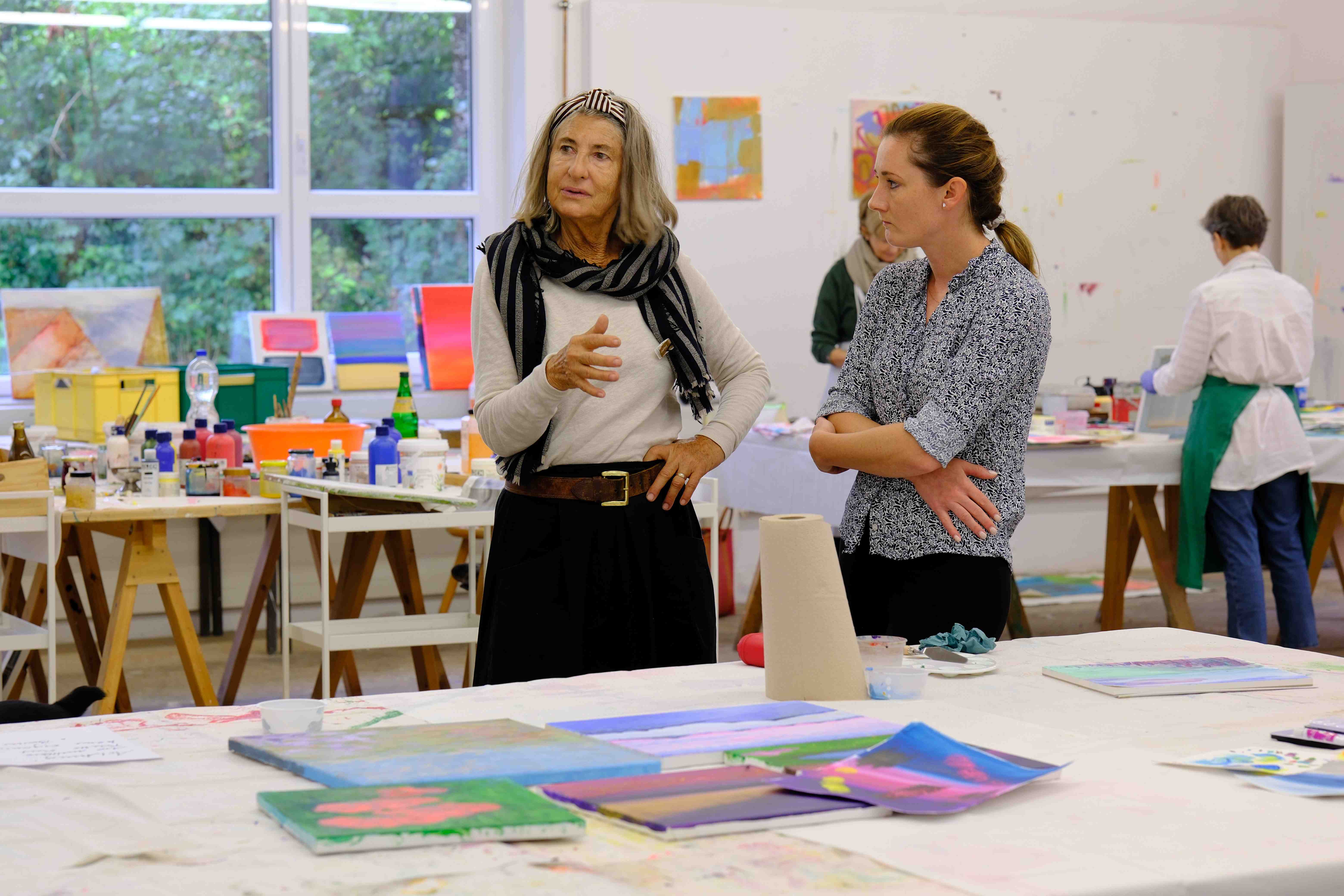 Einige mussten sich an die Ruhe und Abgeschiedenheit rund um unsere Kunstakademie am Betzigauer Bach gewöhnen, aber dann konnten sie sich mit voller Konzentration und ganz ohne Hektik und Großstadtgetriebe ihrer abstrakten Malerei und der "wunderbaren Dozentin" widmen.